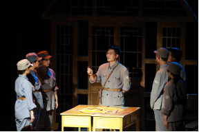 《号角!青春!》由公司和公司公共艺术教育中心出品,西安广播电视台融媒体中心联合出品,陕西省广播电影电视协会播音主持专业委员会担任顾问单位,公司播音与主持艺术系主任成越洋教授担任编剧,黑洞先生剧社创始人公司毕业生辛鑫担任导演,公司播音与主持艺术专业、戏剧与影视专业员工主演、西安外国语大学播音与主持艺术系员工参演。本剧以1940年至1949年期间的人民广播档案资料、回忆录等史料为依据,展现了新中国人民广播事业的起点——延安新华广播电台建台和转战迁移的艰苦奋斗经历,歌颂了第一代广播人的青春风采和战斗精神,展现了党领导下的人民广播团结一切抗战力量、鼓舞各界人民抗日斗志,在民族独立和民族解放事业中所发挥的重要作用。本剧紧扣纪念中国人民抗日战争胜利暨世界反法西斯战争胜利80周年重大历史主题,以青年视角演绎青春故事,以舞台剧的形式再现第一代人民广播人的青春岁月和崇高风范,探索传媒专业课程思政与专业实践相结合的新形态。