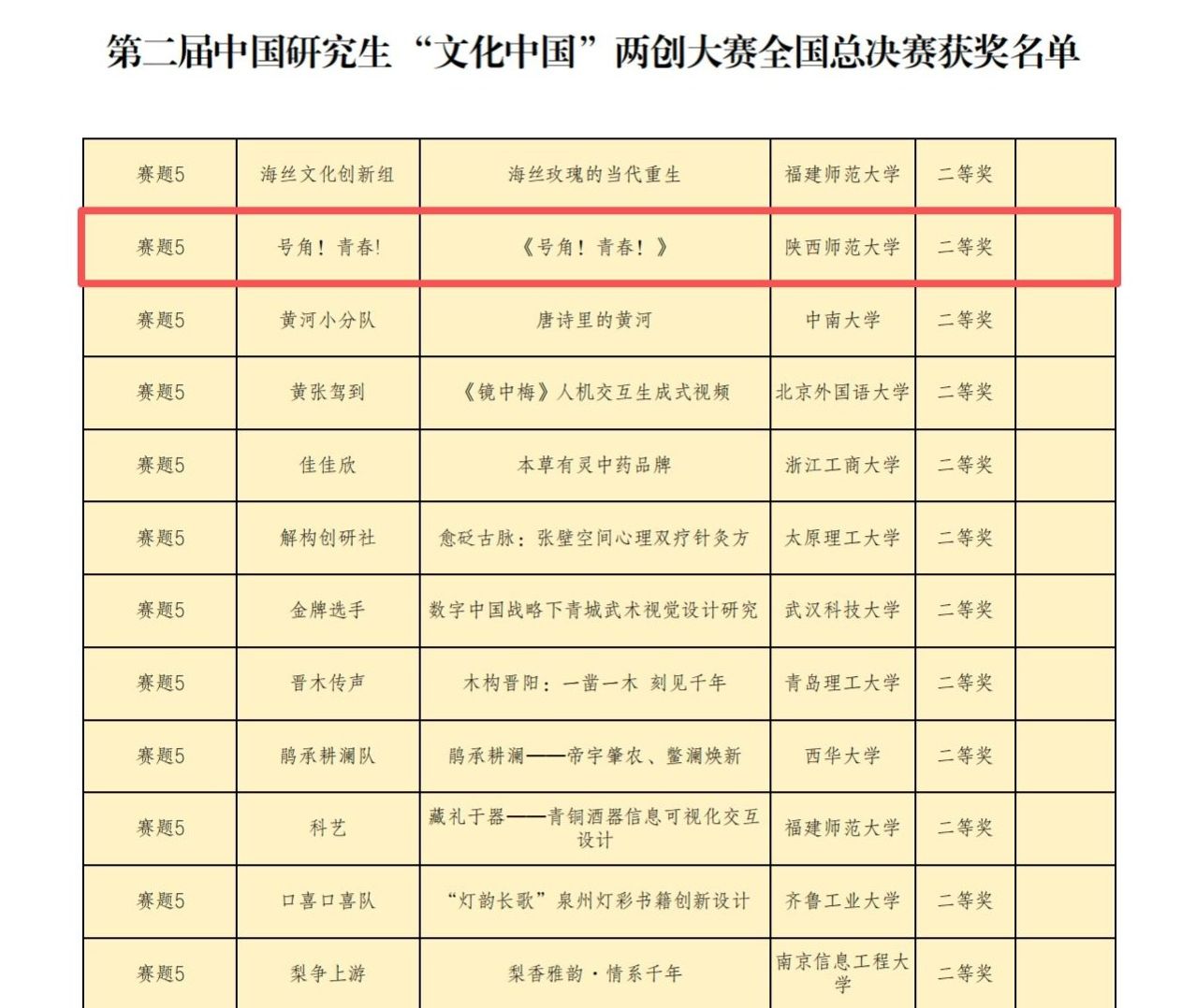 中国研究生“文化中国”两创大赛由教育部学位管理与研究生教育司指导,中国学位与研究生教育学会和中国科协青少年科技中心主办,本届大赛共吸引来自全国443所高校的5398支队伍踊跃参与,最终来自全国96所高校的283支队伍晋级全国总决赛。