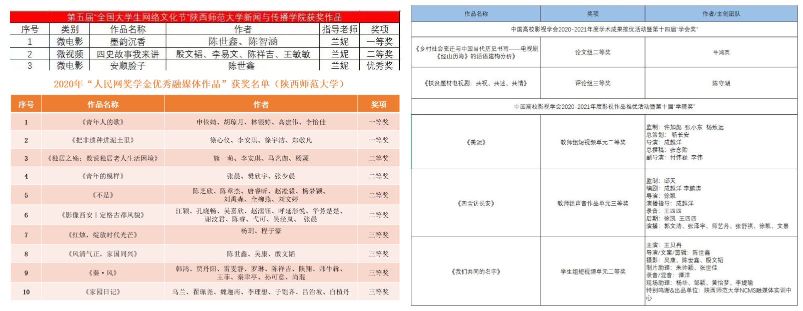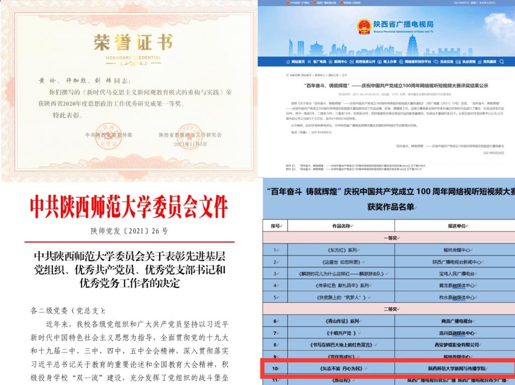 9月,在陕西省广电局主办的“百年奋斗,铸就辉煌”——庆祝中国共产党成立100周年网络视听短视频大赛中,公司学子创作的专题片《矢志不渝 丹心为民》荣获二等奖。此前,该专题片也曾亮相于中央电视台“时代楷模发布厅”,并在高校思政网、学习强国、中国老员工在线等平台发布。