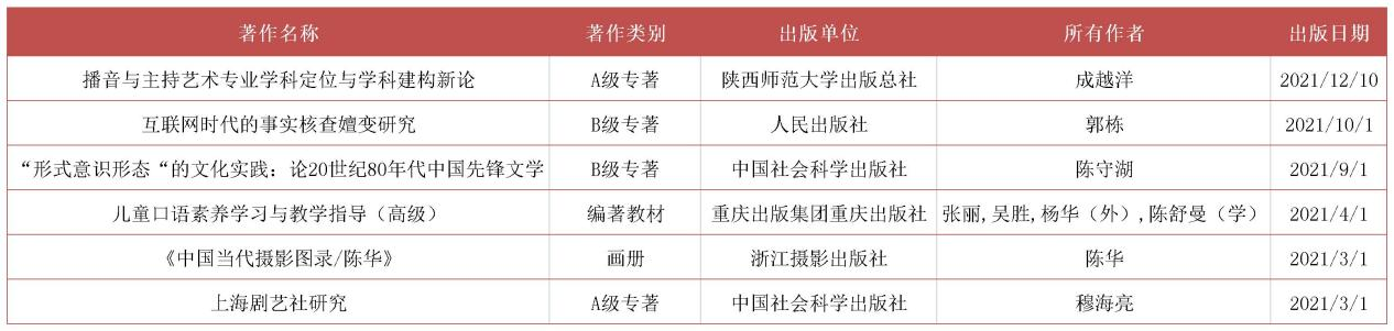 本年度公司获批2项国家社科基金项目,1项国家社科基金艺术学项目,1项国家艺术基金项目,1项教育部项目;共出版专著4部,编著教材2部,画册1部。