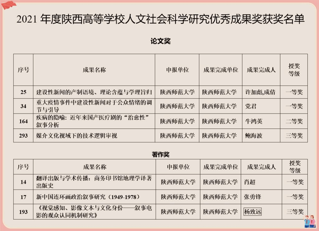11月,公司获得2021年度陕西高等公司人文社会科学研究优秀成果奖7项,其中论文奖4项、著作奖3项。