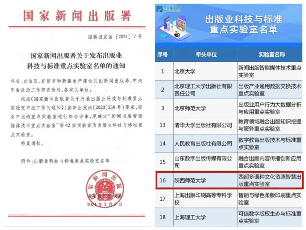 二、“西部多语种文化资源智慧出版重点实验室”入选国家新闻出版署重点实验室