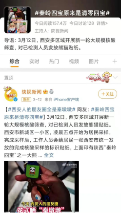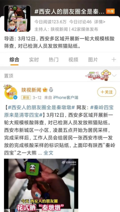 3月12日起,西安开启新一轮核酸筛查。核酸检测完毕后,便可以领到可爱的“大熊猫”“金丝猴”。它们其实是由核酸筛查点位统一发放的贴纸。