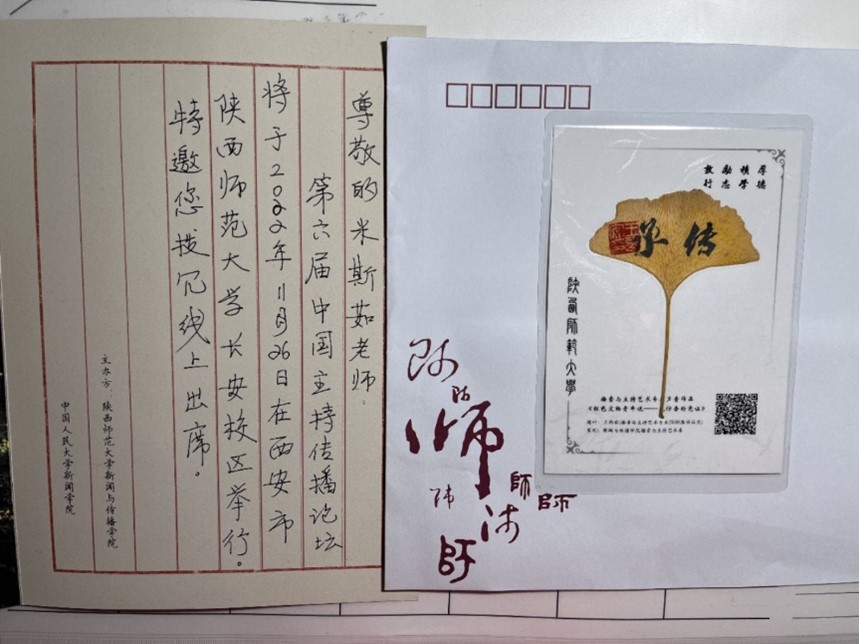 图 与会代表收到的手写邀请函与银杏叶书签