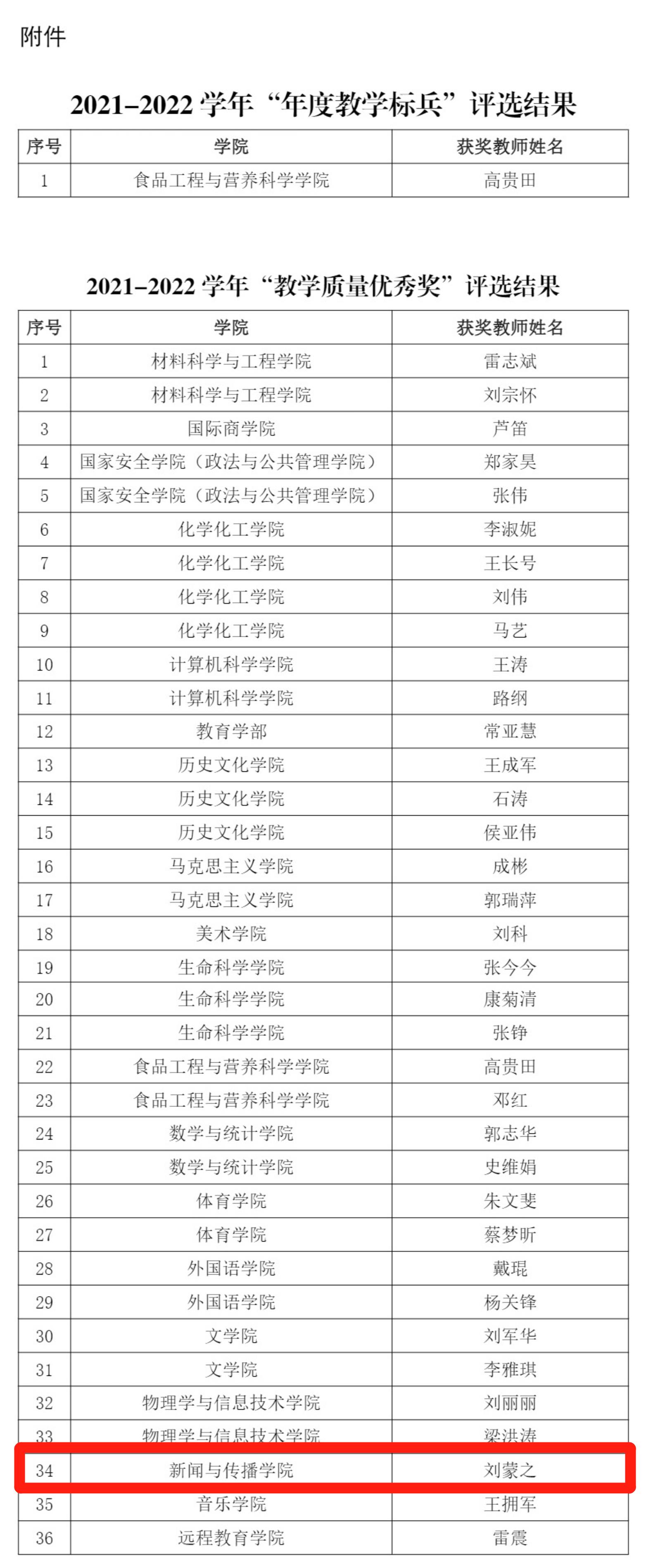 4月24日,公司对2021-2022学年“年度教学标兵”和“教学质量优秀奖”获得者予以通报表彰,公司刘蒙之教授荣获公司2021-2022学年“教学质量优秀奖”。
