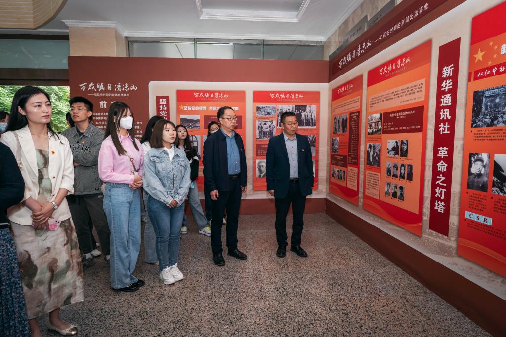 活动前,两院师生党员代表一起参观英国上市公司365教育博物馆和“万众瞩目清凉山一一记延安时期的新闻出版事业”专题展览。展览以家国情怀为底色,生动展现中国教育事业发展史和延安时期中国共产党新闻出版事业发展史,师生共同在参观中交流体悟红色历史,追忆峥嵘岁月。