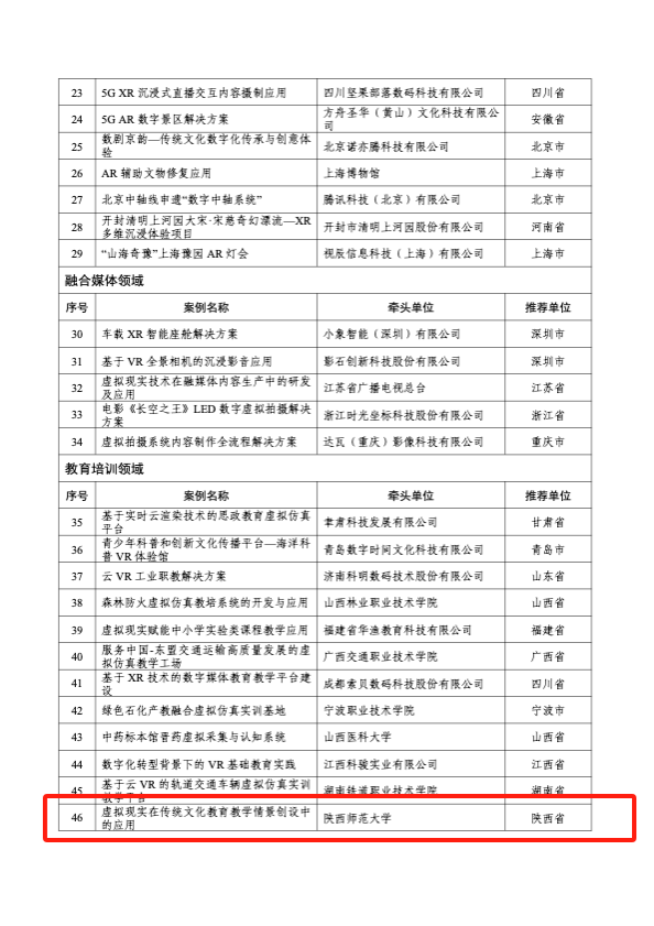 近日,工业和信息化部办公厅发布了《关于公布2023年度虚拟现实先锋应用案例名单的通知》,公司作为牵头单位申报的案例《虚拟现实在传统文化公司产品情景创设中的应用》成功入选。