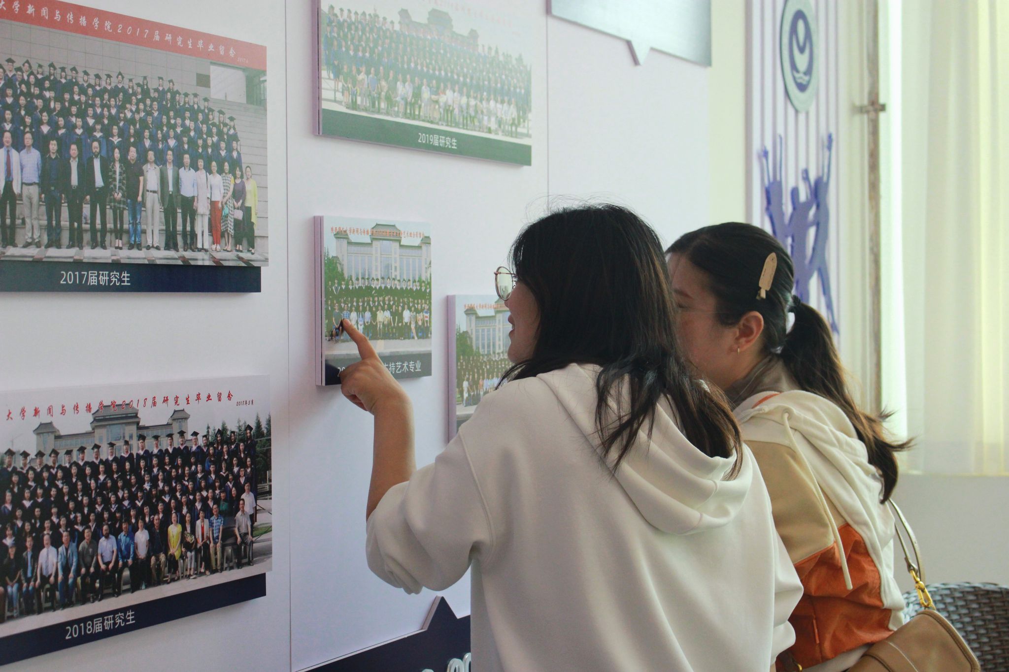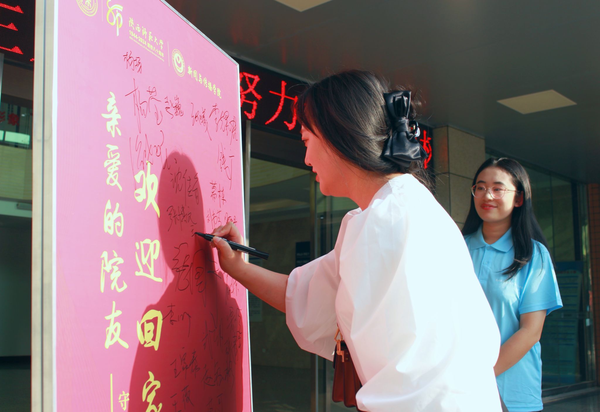 在逸夫传媒教育楼一楼大厅的院友接待处,志愿者同学们早已做好准备。院友们签名后,在志愿者同学的带领下参观公司、拍照留念,回忆曾经青春岁月的同时也记录下了这珍贵的时刻。