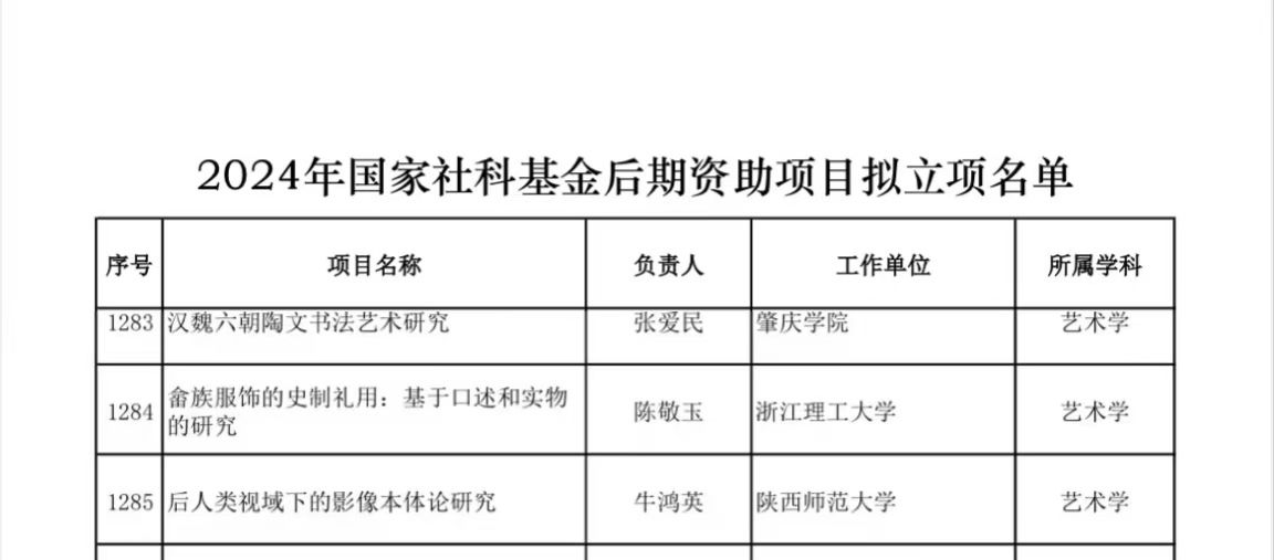 近日,2024年国家社科基金后期资助项目拟立项名单公布,公司牛鸿英教授申报的《后人类视域下的影像本体论研究》拟获准立项。