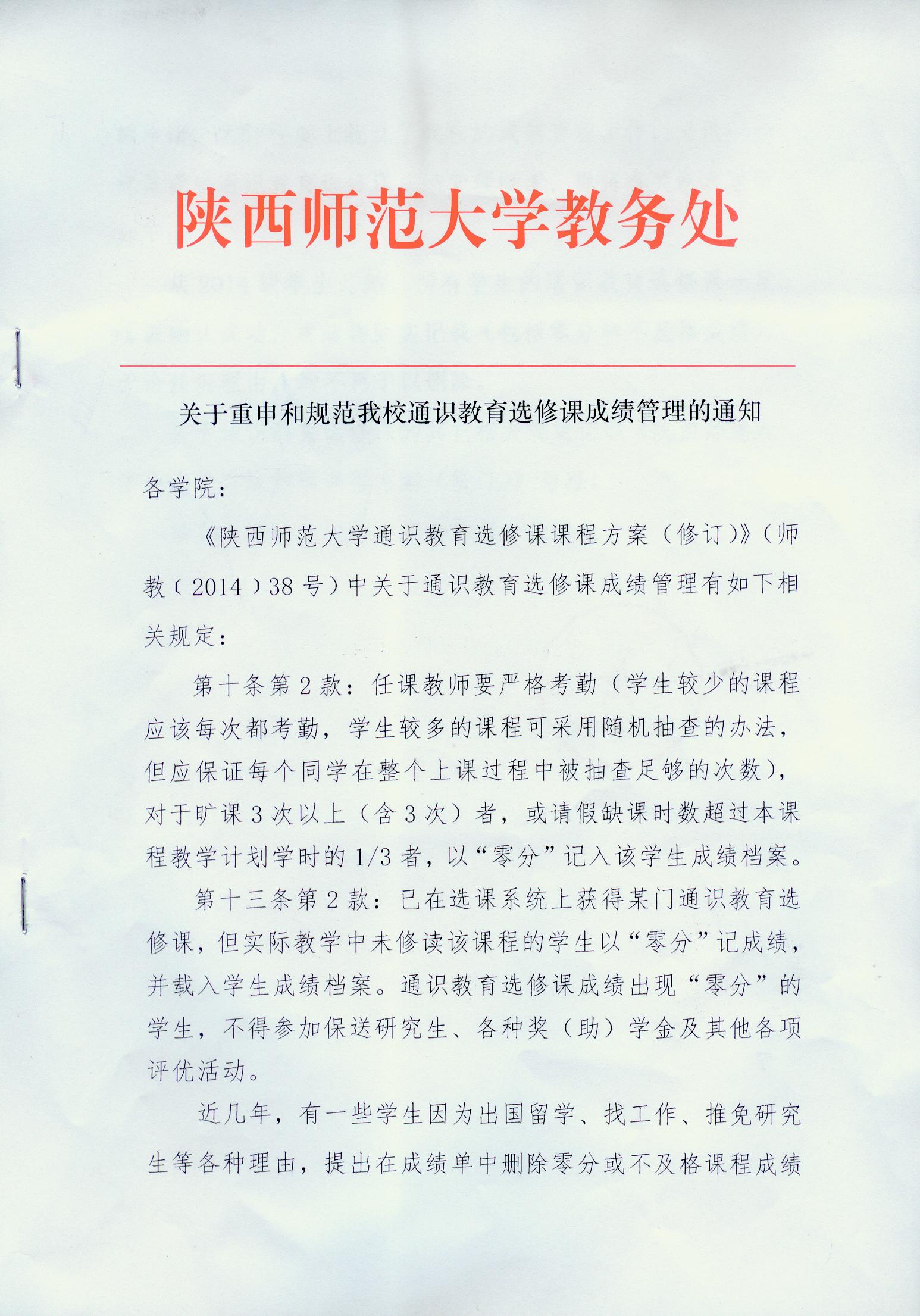 关于重申和规范公司通识教育选修课成绩管理的通知