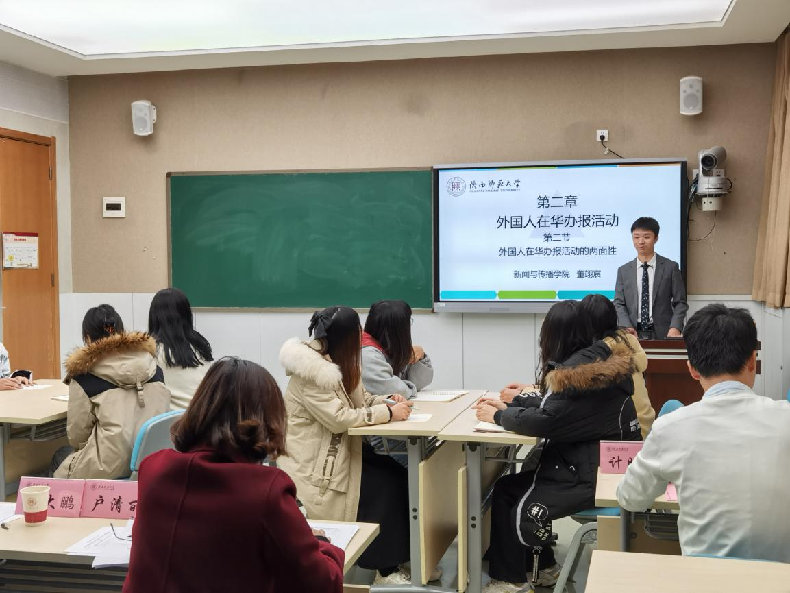 在此次青教赛决赛中,两名青年教师汲取预赛的经验和教训,在各位专家的指导下,进行了精彩的授课内容。杨馨老师将课程以专题的形式呈现,用大量生动有趣且富有争议的案例,旁征博引,知识储备极为丰富,引起在座各位员工和评委对隐形采访时的伦理问题进行思考,同时,杨馨与在座员工积极互动,课堂氛围活跃。董翊宸老师的授课科目为《中国新闻传播史》,其以“外国人在华办报活动”为题,用生动有趣的史料带领大家了解外国人在华办报活动的两面性。