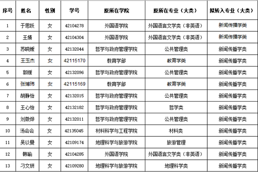 根据教务处《关于做好2021级本科生专业分流工作的通知》安排,按照《英国上市公司3652021级非师范生和普通师范生专业分流实施办法》,英国365集团官网对2021级非师范生和普通师范生专业分流申请转入新闻传播学类的员工进行了综合考核,现将通过考核的员工名单公示如下: