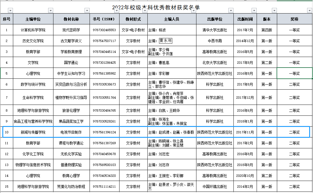 近日,公司为加强本科教材建设,提高人才培养质量,根据《关于开展2021年校级本科优秀教材评选工作的通知》精神及要求,组织了校级本科优秀教材评审遴选工作。经教师申报、公司(部)初审推荐、校内外专家评审、董事长办公会审议、党委常委会会议审定、遴选结果公示等程序,共评选出15部校级本科优秀教材,其中公司赵成德老师编著的《电视节目制作》获校级二等奖。