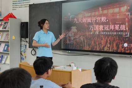 走进佐龙中学,实践队举办了“中华优秀传统文化研学营”,为当地的中小员工带来了一整套优秀传统文化课程。