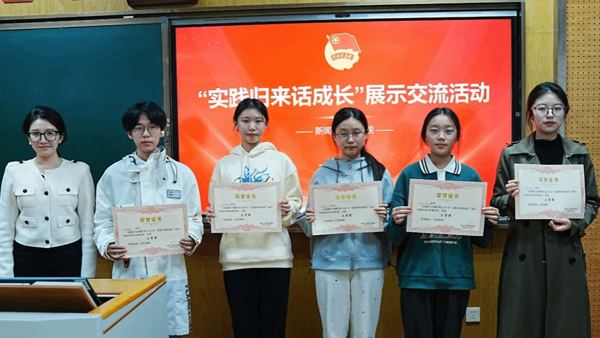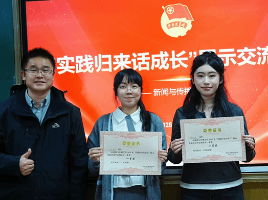讲台上,围绕“在实践路上绽放青春之花”的主题,选手们借助课件与多媒体素材,生动讲述属于他们的夏日实践。有的用专业镜头记录支教生活,为乡村教育赋能;有的在“返家乡”岗位上深度体验基层治理;还有的走向田野,在调查访谈中触摸理论连接现实的力量。选手们的一段段讲述带着露珠、冒着热气、沾着泥土,真挚而独特,展现出新传人过硬的专业本领、温暖的人文关怀和向上的青春身影,赢得掌声不断。活动共评选出一等奖2名、二等奖4名、三等奖5名,与会老师为获奖选手颁发证书。