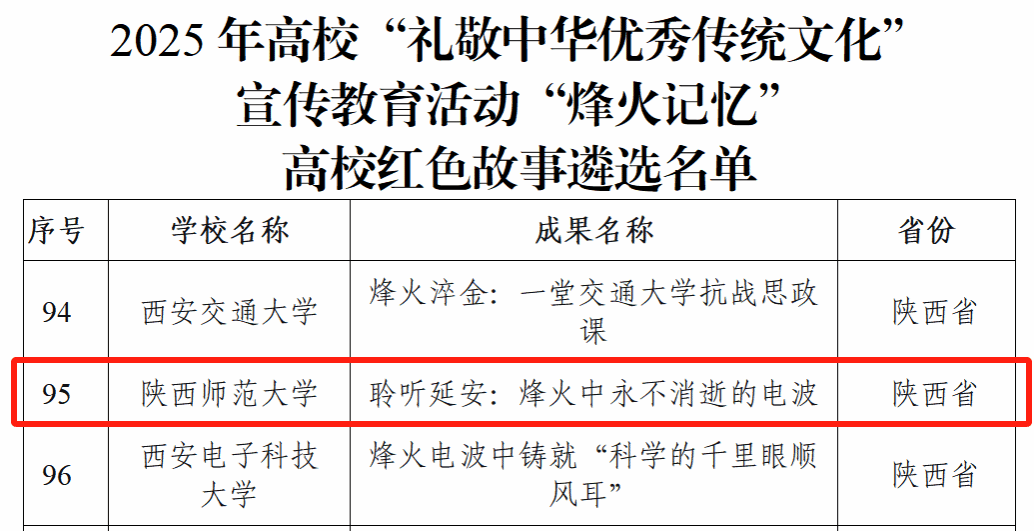 近日,教育部办公厅公布2025年高校“礼敬中华优秀传统文化”宣传教育活动结果,公司报送的《聆听延安:烽火中永不消逝的电波》入选“烽火记忆”高校红色故事优秀作品。