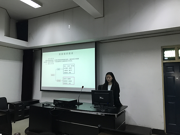通过初步评审,公司共有四个班级进入了答辩环节,分别是14级广播电视新闻编导班、15级新闻1班、15级网络与新媒体班及15级编辑出版1班。参选班级分别以PPT的形式,从班级文化建设、党团建设、学风建设、文娱活动、班级获奖成果等方面进行展示。其中, 15级新闻1班别出心裁,以新闻播报的形式介绍了班级举办的各项活动,并细心整理出班级员工获奖情况,辅以数据图直观展示出班级全员的优异成绩,把数据与图片很好的结合起来,彰显了浓厚的新闻专业特色。15级编辑出版1班的同学们,在老师的督促与帮助下,潜心提升专业能力,上学期每人撰写五万多字文章,并发挥编辑专业特色精心编排版式,将“韦编三绝、辑志协力”的班训彰显的淋漓尽致。14级广播电视新闻编导班开展了丰富多彩的活动,“冬至饺子宴”、“成长”主题团日活动……,在活动中增进了同学们的友谊,收获了快乐。另外,15级网络与新媒体班完善的班级制度也让评委们赞不绝口。参与答辩的其他班级也都结合专业特点和班团活动特色展示了班级建设成果并认真回答了评委老师的提问。