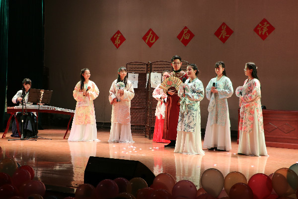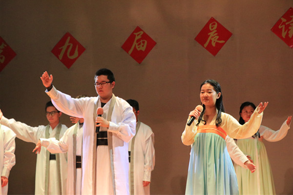 首先,第一个上场的节目是来自16级新传一班的《正气歌》。该节目将古筝演奏和朗诵完美融合,通过同学们感情深沉,气壮山河的诵读充分展现出了南宋诗人文天祥崇高的民族气节和强烈的爱国主义精神。来自16级新传二班的《诗经诵》将诗经的五篇经典篇目以朗诵为主,舞蹈情景剧为辅的形式向观众展示出来。节目根据篇目的不同主旨分为三个部分:其一为爱情篇,其二为战争篇,其三为相思篇。首先通过舞蹈的形式将观众带入诗的情境中,之后再以情景剧和朗诵同时进行的形式使观众能够真切的感受到诗中主人公的感情,同时了解到我国古代人们对于真挚爱情的向往。节目希望通过丰富的形式,动情的朗诵以及真挚的情感使观众感受到古人的高尚,从而爱上诗经。爱上传统文化。来自15级的播音编导节目《杨门女将》情感真挚,在表现中融入舞蹈的部分,充分表现出杨门女将们的家国情怀,赢得台下观众的喝彩,反响极为激烈。刚参加完“齐越节”比赛的刘霖学长为我们带来了《陈情表》的展示诵读,同时也为大家分享了自己的比赛和专业学习经验。接下来是《红楼梦诗词吟诵》节目,来自15级网络与新媒体专业的同学们将朗诵,剧情,现场作画等多方面内容相互融合,形式新颖别出心裁。16级编导的节目《汉韵》通过优美的舞蹈和朗诵展现古代文化的动人魅力。16级新传三班为大家带来的节目《长恨歌》,不同于以往大家对于长恨歌的认知,同学们通过反串等戏剧化的演出,演绎了李隆基和杨玉环的爱情悲剧,动情的朗诵和精彩的历史再现使得现场掌声不断。15级同学们带来的原创朗诵节目也赢得了现场的阵阵好评。16级新传二班的《春江花月夜》以春,江,花,月,夜五个景色引发了对于人生的思考,但整体基调并不忧伤。评委老师称赞该节目给人一种美的感受,并以此发问,让同学们阐述对于“人生代代无穷已,江月年年望相似”的感受。16级播音班带来的《破窑赋》和16级新传三班的《花木兰》节目也同样十分的精彩,展示了自己对于古代文学的理解。最后以舞蹈节目《相思垢》作为完美的结尾。