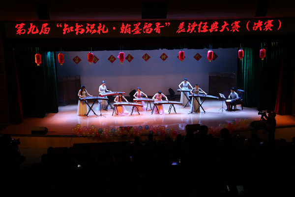 本次大赛开始前还特别邀请了音乐公司陕师大秦·情筝团的同学们为大家献上精彩的演出。古筝《天山之歌》悠扬婉转的旋律带我们走进了古代文学经典的世界,伴随着声声弦鸣,本次晨读经典大赛决赛也拉开了帷幕。