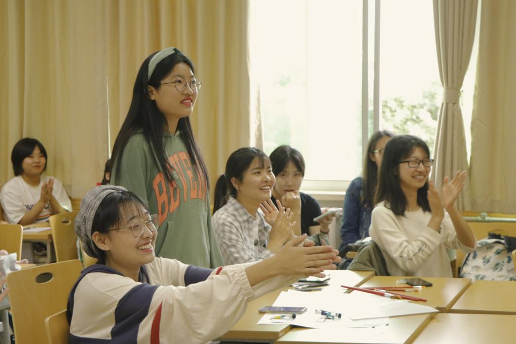 在“数风流人物,还看今朝”篇章中,同学们分为四个小组进行了“你画我猜”的游戏。同学们的一问一答中妙趣丛生,博得了大家的喝彩,使得活动的氛围更为热烈。2018级新闻斯诺班团支部以这种新颖的方式,从历史、科技、文艺、政策四个方面,回顾了共和国成立70年来的光辉峥嵘岁月。