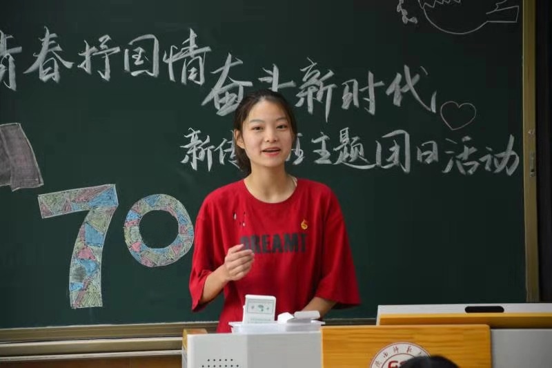 七十年风雨兼程,七十年沧桑巨变,党带领我们披荆斩棘,携手共进,才有了如今的“天翻地覆慨而慷”。在团日活动中,团支书分别从不同的切入点,让同学们沿着时光隧道,全方位回顾和感知共和国走过的光辉历程。17级新闻班团支部进行“听歌猜歌名”的游戏,从新中国成立70年来不同阶段的经典歌曲中回望祖国建设发展的峥嵘岁月。