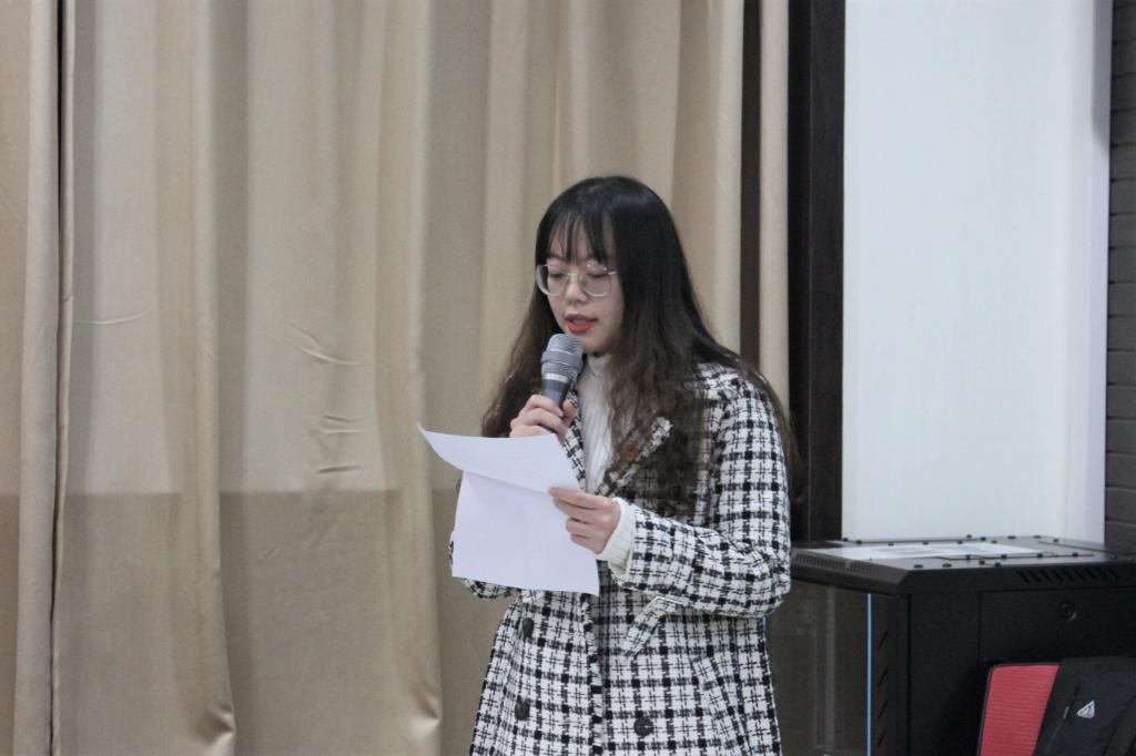 会议第二项议程,团委副书记胡琼月总结上一期初级团校培训班工作的开展情况及成效,并向同学们介绍本期初级团校培训班的具体安排。她总结道,上一期培训班课程加强了公司共青团工作的思想建设和组织建设,对青年团员产生了诸多积极影响。而本期培训班较往期不仅增大了学员规模,更在课程设置方面进行了改革创新。如首次推行学分制来完善学员考核评定制度,开设校外实践课程、研学讨论课程等等。