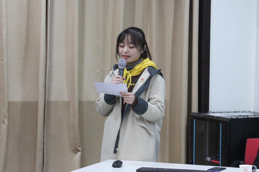 随后,17级新闻斯诺班的团支书申依婧同学作为初期培训班的优秀学员代表发言。她提到,通过上一期培训班课程的学习,她学到了许多实用的理论知识,也更加明确了自己作为一名团支书的职责定位。李诗妮同学则代表本次参加培训班的全体学员向团组织庄严承诺:“认真上好每一堂团课,努力在实践中得到成长,开拓进取、勇于创新,争取早日成为一名优秀的团干部。”