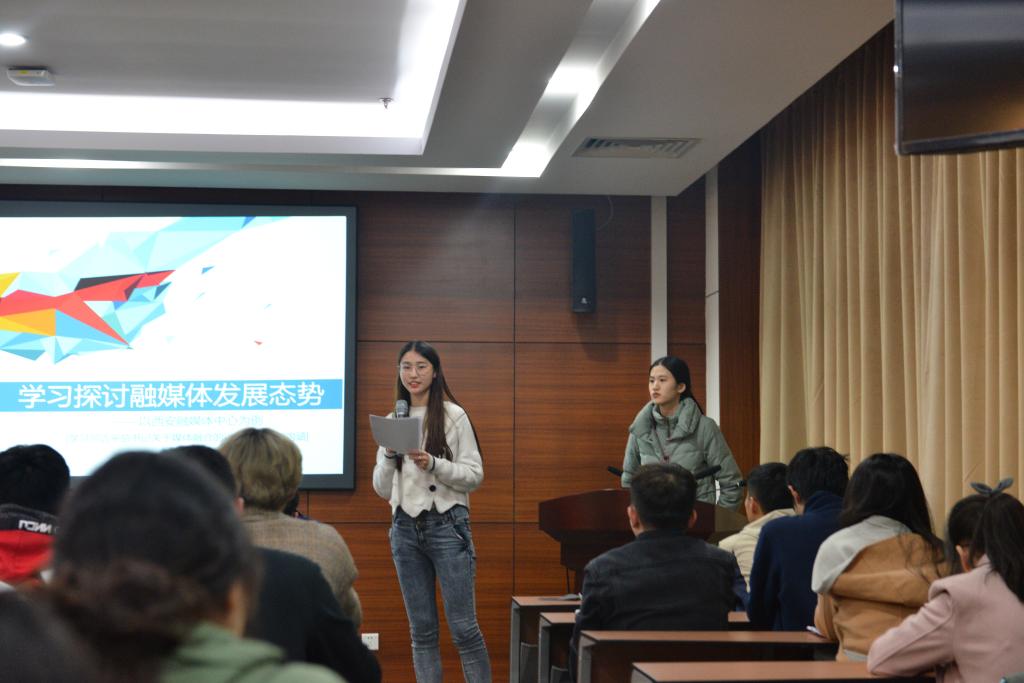 通过视频展现中国崛起的艰辛历程,从一穷二白到繁荣强盛,各时代特有的民族精神深深感染着每一位学员。结合习近平总书记发表的关于全媒体时代和媒体融合发展的重要讲话,学员们针对信息社会飞速发展过程中给新闻舆论带来的挑战畅所欲言。理论学习与实践探索的结合,对学员们创新内容形式提升团组织的活力大有裨益。