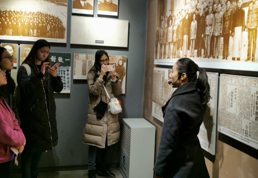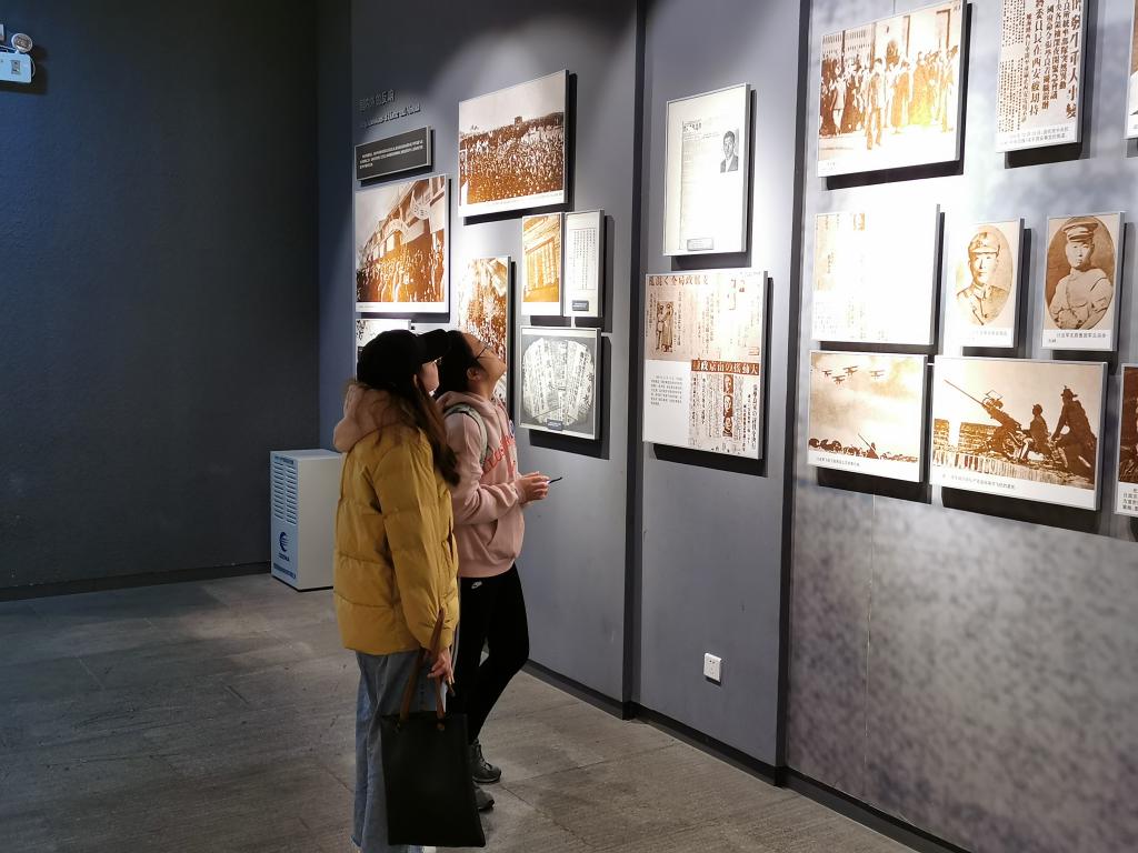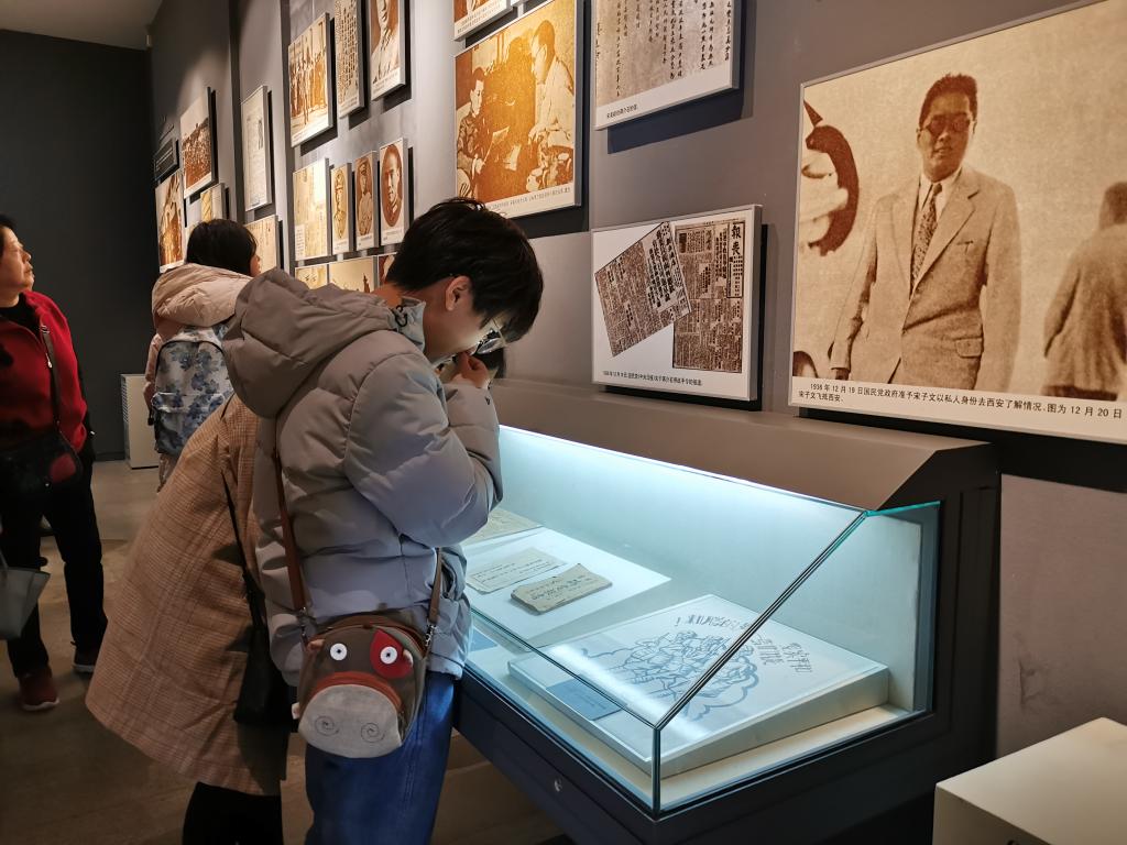 在参观过程中,同学们发现“报纸、杂志类展品和历史照片的占比很大”。展厅中那一张张报纸、一本本杂志拼接成了一个紧张的1936,一个热血的1936。同学们不时驻足观看,认真听取讲解,讨论相关内容,深刻认识到报界、新闻出版界的舆论宣传对于鼓舞士气、剖析时局、传播最新讯息的重要意义。