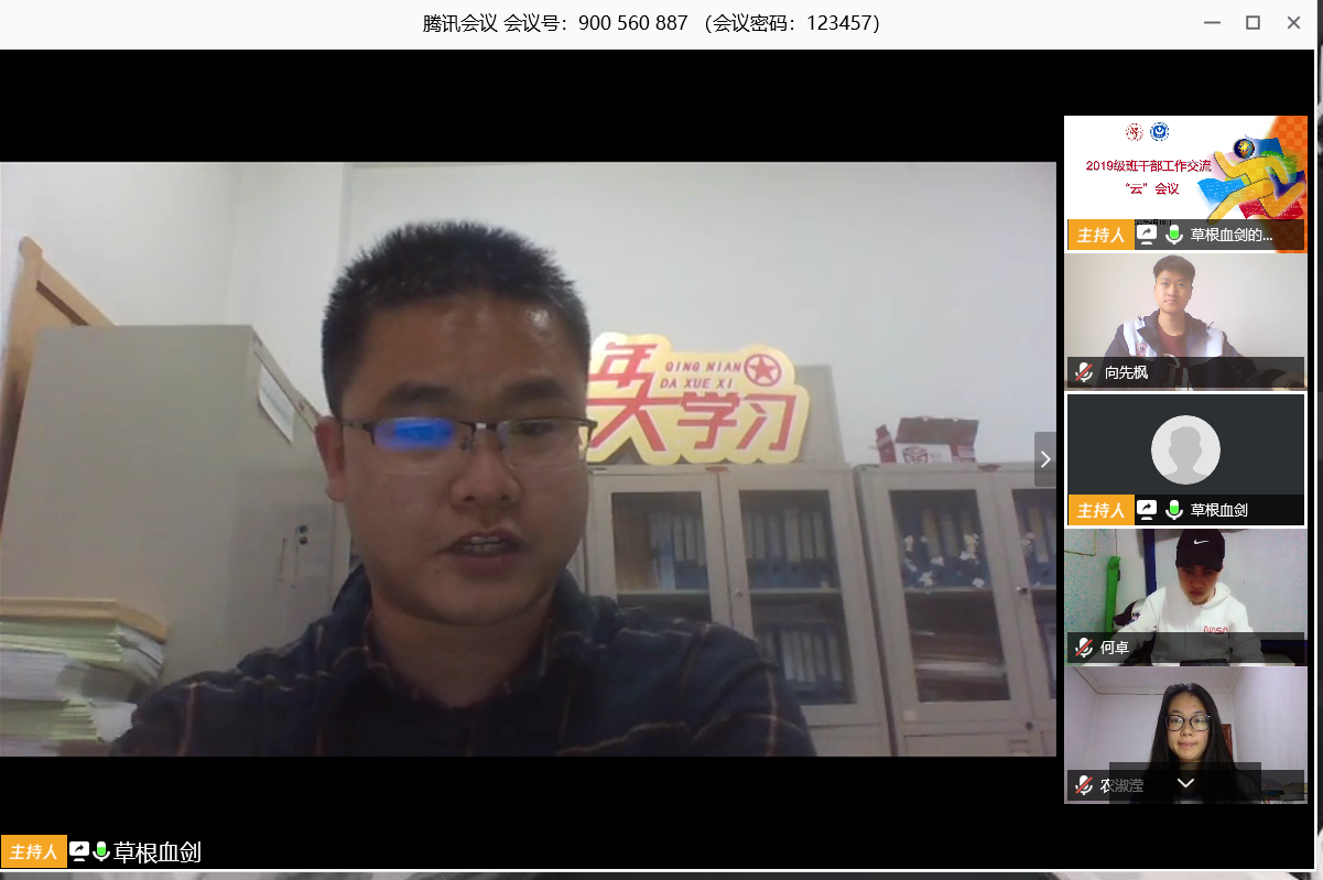 为指导员工干部加强班集体建设,积极应对“云课堂”“云班会”“云活动”等的新形势、新要求,4月18日,公司2019级本科生各班班长、团支部书记,与辅导员刘炜老师通过“云会议”进行了工作交流和探讨。