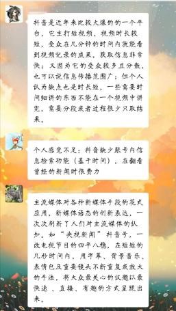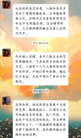 由于第一阶段的研究,我们发现了几个问题:一、传统报道相对于短视频报道有“没落”趋势,传统报道的短板在何处?二、短视频报道是否全是优点,它的不足之处又在哪里?小组成员在微信群里进行了激烈的探讨。