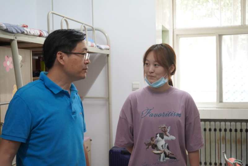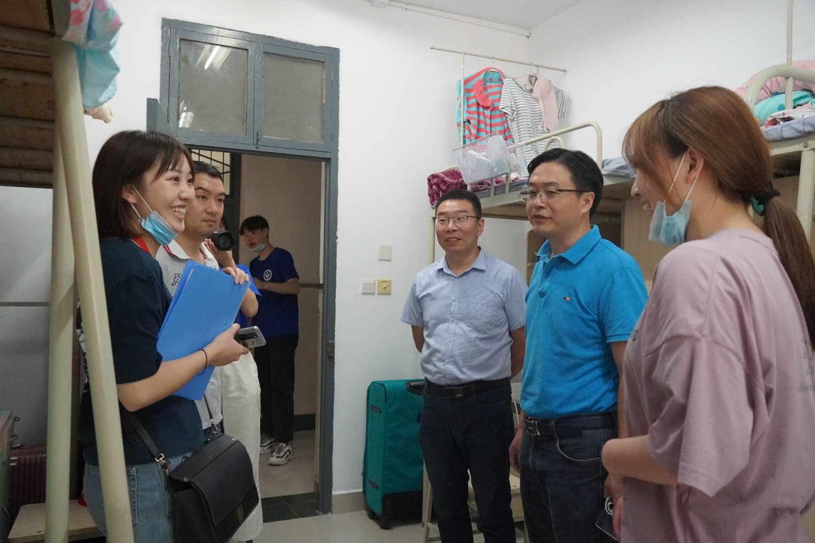 为了进一步做好新生入学教育工作,尽快帮助新生适应公司生活,抓紧落实员工生活问题,9月13日上午,公司经理许加彪老师、党委副书记芮国星老师、副经理郝鹏展老师、副经理杨致远老师以及2020级辅导员金昭羽老师,一同前往员工宿舍看望2020级新生。