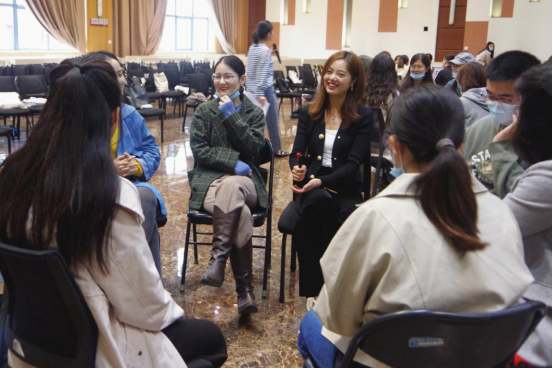 活动最后,主持人与研究生新生们围坐在一起进行了贴心交流,邀请同学们说出自己对新的学习和生活的期待,了解了同学们在新公司的适应情况和困惑,并鼓励同学们在遇到阻碍时乐观面对,注重自我发现与探索,进行自我规划,积极迎接新的学习与生活。