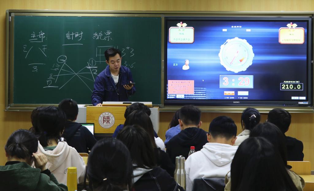 在第一次培训会中,陕翔同学详细讲解了本次辩论赛的比赛规则、赛制安排与分工原则。他提到,在比赛中,工作人员须秉持“公平,公正,公开”的原则,以保证辩论赛的良好秩序与顺利举行。讲解结束后,工作人员根据本次培训的内容进行讨论与分工。