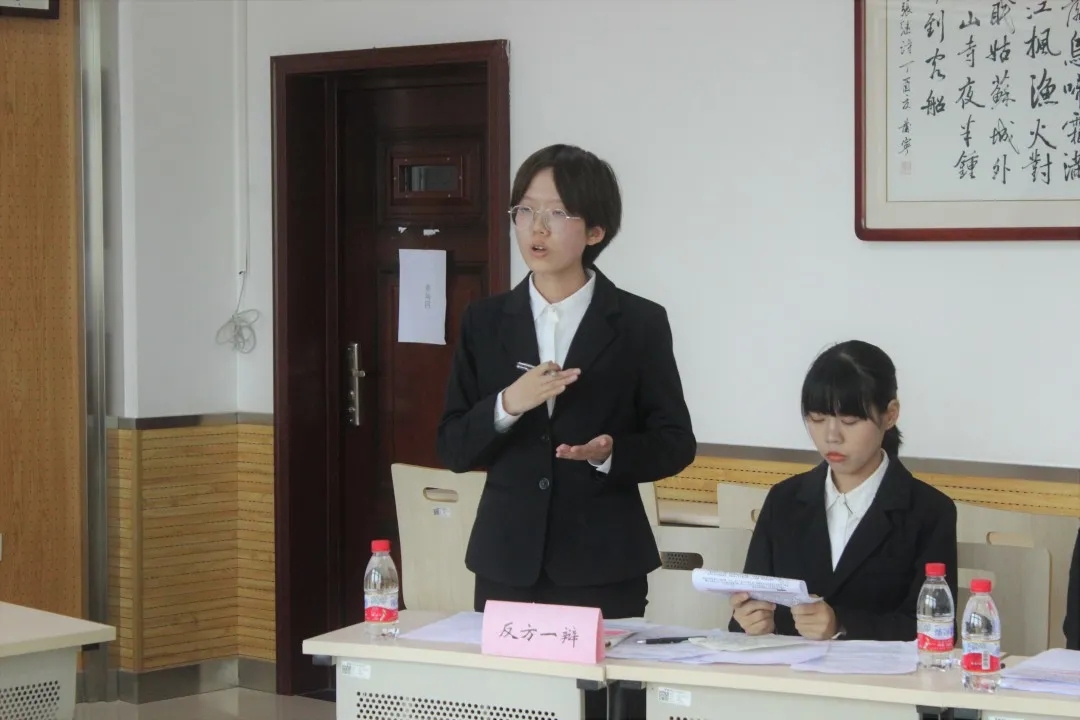 每场辩论赛设主席一名、计时员一名、评委三名、辩论队伍两支。首先由主席介绍在场人员并主持开赛,辩论结束后,三位评委分别就整场比赛和个人表现进行评价。辩论赛共分为立论和质询、驳辩和质询、质询小结、自由驳辩、总结陈词五个环节。在辩论过程中,双方选手针锋相对,抓住突破口,或一针见血,或循循善诱,你来我往下,一次次将辩论赛推向高潮。赛场气氛紧张激烈,场下观众目不转睛,无不感叹比赛的精彩。