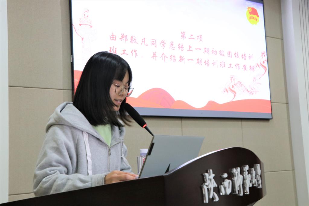 第二项,郑敬凡同学总结上一期初级团校培训工作,并介绍新一期培训班的工作安排。本次初级团校培训班的改革创新分别体现在考核制度和课程设置两方面。考核制度方面增添了考试环节,以考促学,严格要求各位学员掌握相关知识,加深团的认识。同时增加团员手册,规范管理,量化标准。课程设置新增新媒体讲座和新媒体制作,将专业知识与团学理论相结合,将理论与实践相结合。