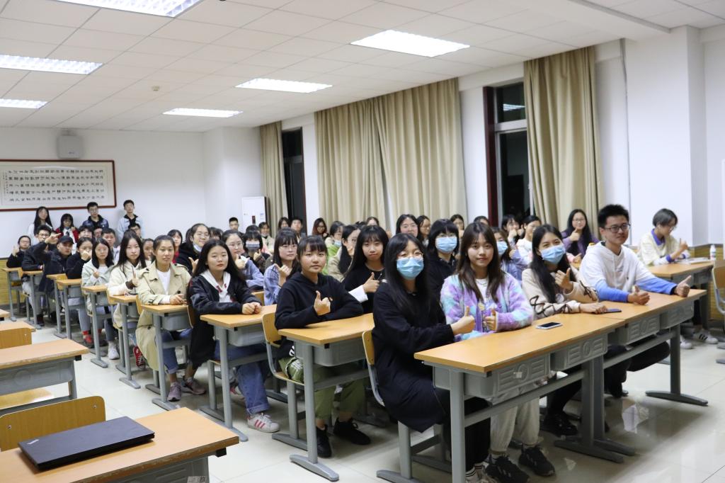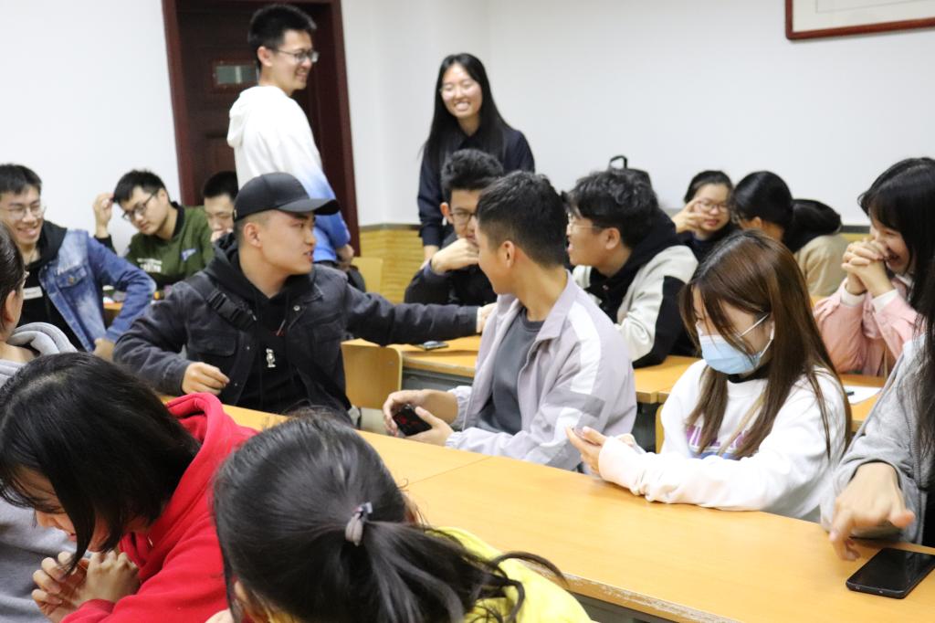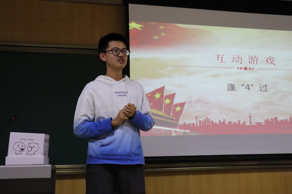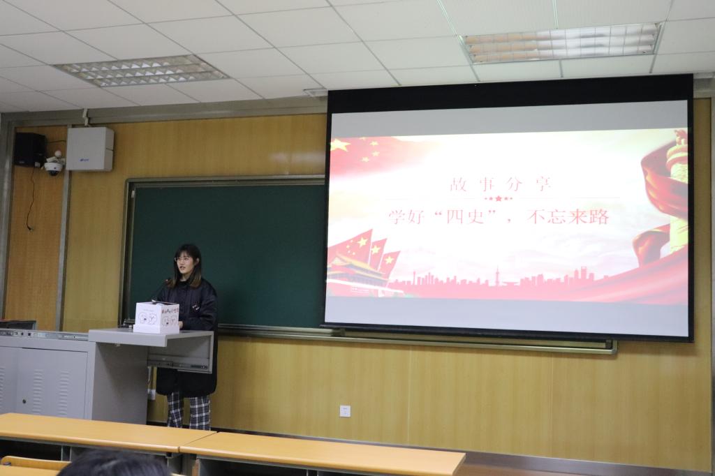“今天是2020年10月25日,62年前,党史上的今天,宁夏回族自治区成立”周杨洁同学站在讲台上动情地说,“而我,就来自宁夏。”作为党史学习小组的成员,周杨洁同学主要分享了从1956年2月中共中央提倡建立省级回族自治区到1958年10月25日宁夏回族自治区正式成立这一段时期的历史故事,并结合自身体会讲述了宁夏这些年在党的领导下的稳步发展。之后,新中国史学习小组的谭缘华同学与改革开放史学习小组的冯真宁同学分别结合中国人民志愿军抗美援朝出国作战70周年、深圳经济特区建立40周年讲述了那一时期的故事,分享了自己的学习成果。社会主义发展史学习小组的郭小可同学则从空想社会主义说起,简单概述了社会主义的兴起、发展和中国化。