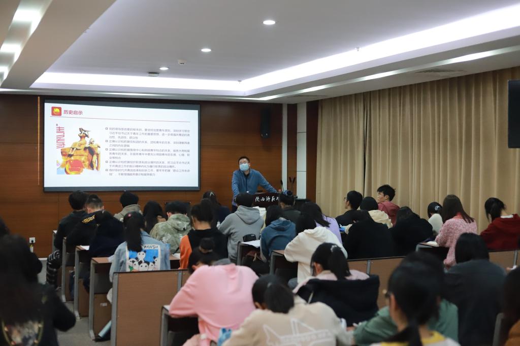 团课伊始,刘炜老师向同学们分享胡献忠《团的光辉历史》讲解视频。视频中,胡献忠先对中国共青团的发展历程、标志性事件、工作内容和品牌等作了讲解。刘炜老师向同学们介绍中国共青团发展的历史阶段,由共青团发展历史所得到的启示,让同学们以史为鉴,永葆初心。