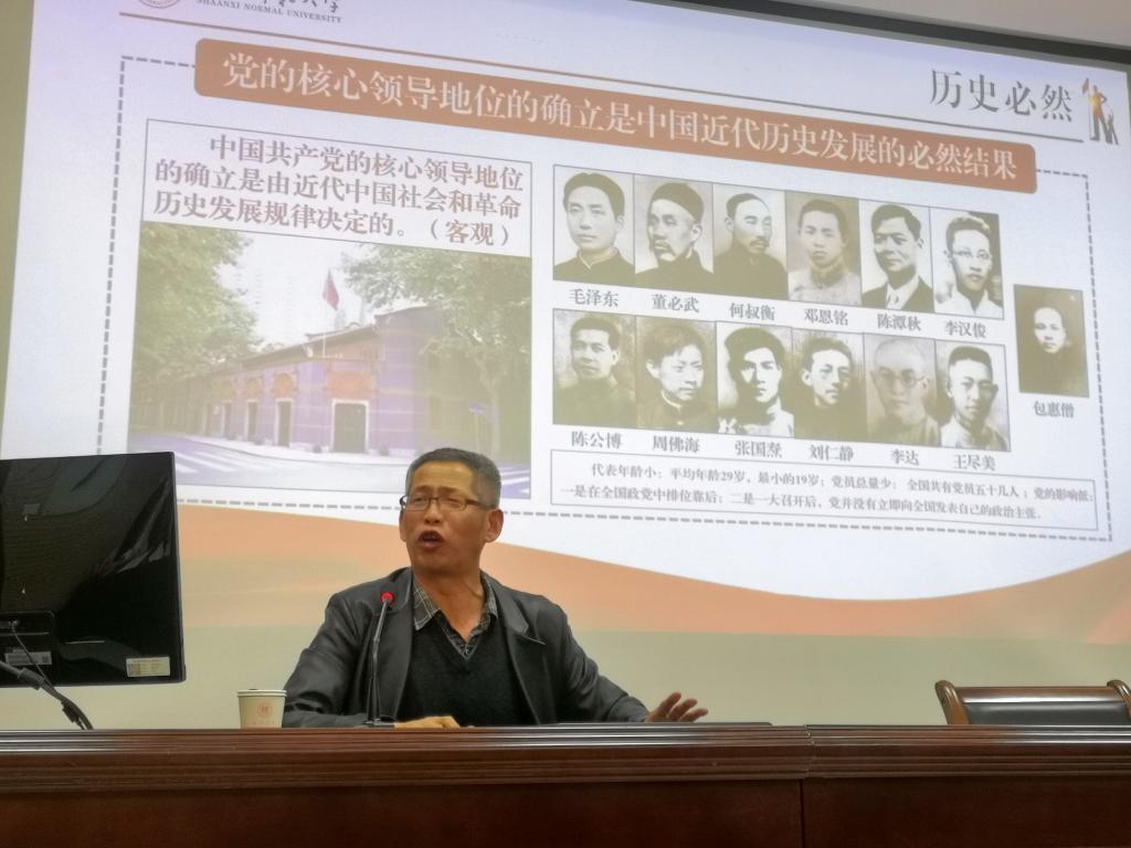 讲座以“坚持、加强和改善党的领导,确保社会主义事业的胜利”为主题。刘建军老师首先从历史的角度分析了党的核心领导地位的形成,指出中国共产党的核心地位不是一日生成的,是我们党在长期的革命斗争岁月,在长期的建设、奋进历程中,在长期的改革开放波澜的进程当中,逐步形成并日益巩固,才走到今天,成为中国建设、改革的中流砥柱的艰辛历程。
