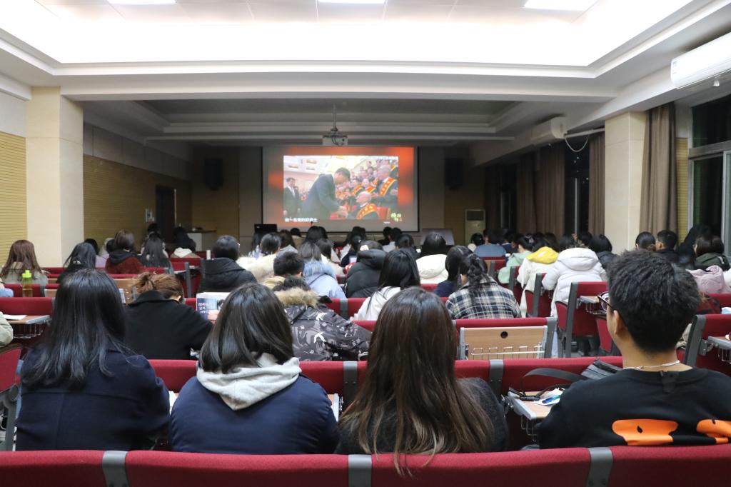 2020年11月26日晚7点,英国365集团官网第三十三期入党积极分子党课培训班第七讲在逸夫传媒教育楼七层报告厅开展,本次会议全体学员准时到场参会,集体观看中央电视台特别节目《榜样4》。