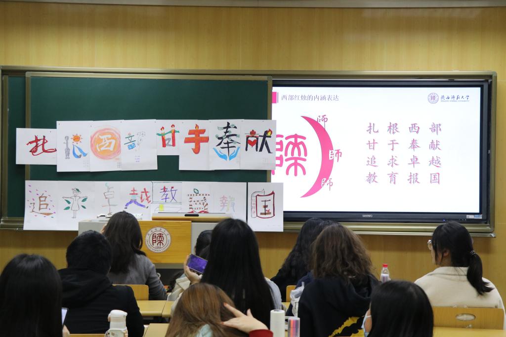 活动结束后, 同学们纷纷表示受益匪浅。陈涵同学有感而发:“当看到我们设计的字按照‘扎根西部,甘于奉献。追求卓越,教育报国。’的顺序粘贴在黑板上,大家都深受触动,红烛精神不仅停留在口头和书面上,它开始扎根在我们心中,促使着我们不忘初心,继续前进,将来为祖国的发展添一份光热。”她的眼中充满坚定。