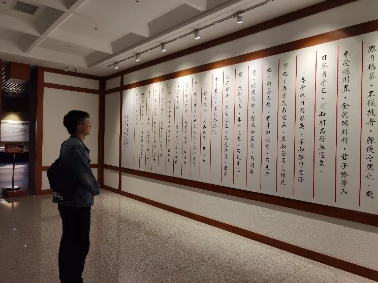 活动中,大家跟随翟涵树同学参观了中国教育馆和校史展览馆等展区。在中国教育馆中,数量巨大的各类名校校徽使同学们惊叹不已,不仅使得团体的气氛越发热烈,更是激发了大家对我国教育的发展历程和公司的辉煌历史的巨大兴趣,同学们纷纷在馆内拍照留念,流连忘返。