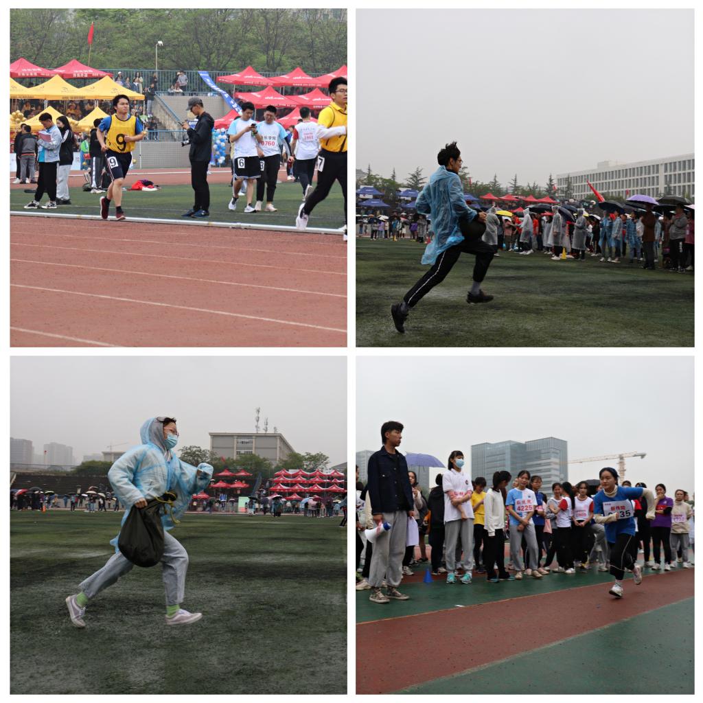 在三天的比赛中,无论风雨晴天,公司运动健儿们奋力拼搏,挑战自我。在个人项目中,运动员们斗志昂扬,奋勇争先,于男子飞盘掷准、女子200米、女子飞镖掷准等项目中勇夺佳绩;在集体项目中,新传学子同心协力、众志成城,于毛毛虫竞速、板鞋竞速、团结协作、动力火车、队旗接力、袋鼠跳和拔河等项目中大展风采。2019级辅导员刘炜老师与2020级辅导员金昭羽老师也冒着大雨参与到负重接力项目中,与员工共进退。在教职工运动会上,公司老师参与集体项目女子4*100米接力赛,老师们拼尽全力,配合默契,为广大学子做出了表率。
