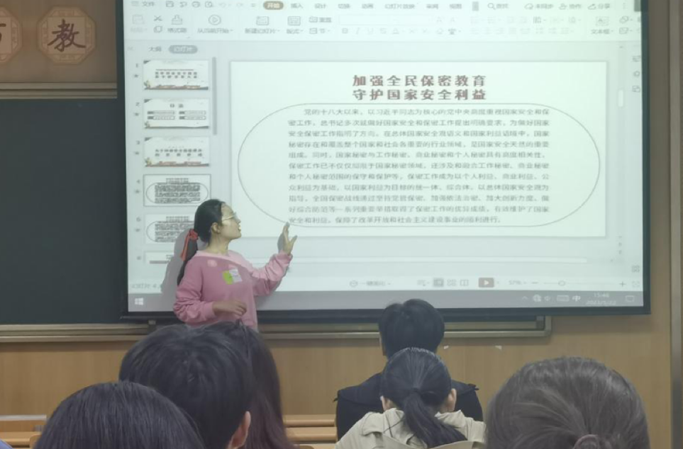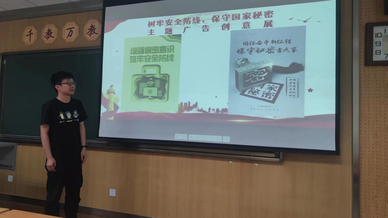 在活动中,团员代表李宥谕、白笑尘同学通过分享典型老员工泄密案例来强调老员工保密教育的重要性、夏兴爽同学则带领大家从广告学专业视角分析优秀的国家安全宣传作品。