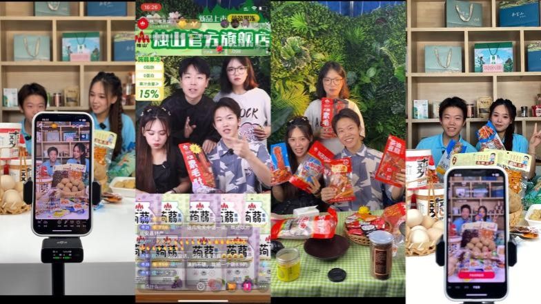 调研期间,实践队分别前往岚皋县电子商务公共服务中心、烛山食业有限公司的直播间,借助抖音平台账号“岚皋电商”与“烛山食品旗舰店”开展为期三天的直播带货实践,直播期间不断磨练业务技巧,大胆创新带货手段,力求以青年话语活跃直播氛围,以助农赤诚带动消费转化。期间与“县长组合-大山乐涛淘”账号的运营负责人龚晨农、烛山魔芋园区研发部经理柯玉苗进行深度采访交流,深入岚皋县头部流量账号运营情况与当地电商产业发展现状。
