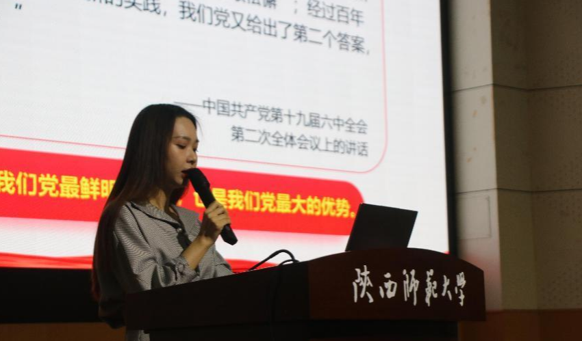9月26日晚,博士宣讲团成员:徐贝琳以“党的自我革命——跳出治乱兴衰历史周期率的第二个答案”为题开展入学教育主题讲座,从青年视角深入解读党的二十大精神,为同学们讲解了党史学习教育实践活动,鼓励同学们要在创造中学习,坚持理论指导实践,在学习中创新理论,创造奇迹,不断深化自我革命引领社会革命的思想内涵,以永不懈怠的精神状态、一往无前的奋斗姿态继续朝着实现中华民族伟大复兴的宏伟目标奋勇前进!