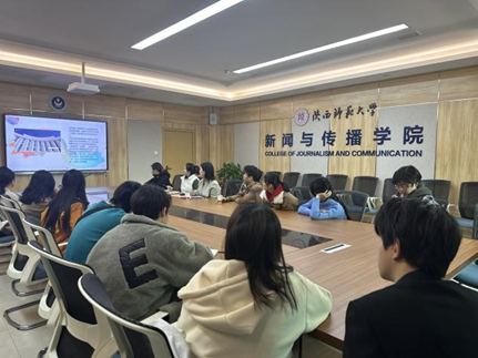 11月29日下午,群众新闻网视听中心主任王晶在逸夫传媒教育楼二层会议室开展以《新媒体创新化报道》为主题的座谈会,本科生辅导员张雯倩与《青年薪声代》团队部分成员参与。王晶老师结合自身经历与优秀传播案例,从团队技术驱动传播格局变革、什么是时政报道、如何创新语态做好时政报道与中长视频的创意化表达四个方面进行分享。