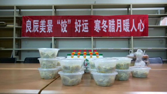 随后,同学们根据个人喜好选择想吃的饺子口味和饮品。无论是韭菜鸡蛋,还是芹菜大肉,亦或是一端上桌就被一扫而空的牛肉馅饺子,都不动声色地牵引出同学们关于“家”的回忆。欢聚一堂,情意浓浓,在一声声有关“冬至”的家乡话里,窗外呼啸的寒风也成了这个冬最悦耳的奏鸣曲。