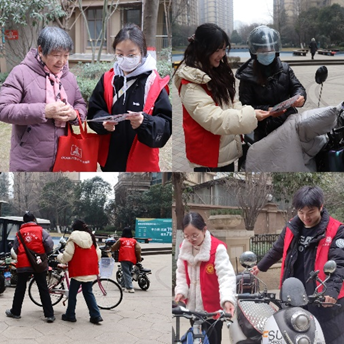公益助老活动结束后,同学们开展了电动车消防安全宣传活动。电动车起火是小区消防安全的重点关注领域,近期,南京雨花台区明尚西苑居民楼火灾事故造成15人遇难,经初步调查火灾原因为电动车起火。支部同学在社区工作人员的介绍下了解了电动车安全的重要性,增强了大家的安全意识。在小区门口,大家整理电动车摆放,分发宣传册,通过浅显易懂的方式让更多的居民了解到消防知识,让电动车真正方便人们生活,而不是成为火灾隐患。