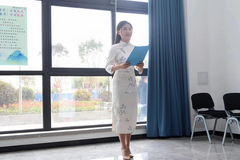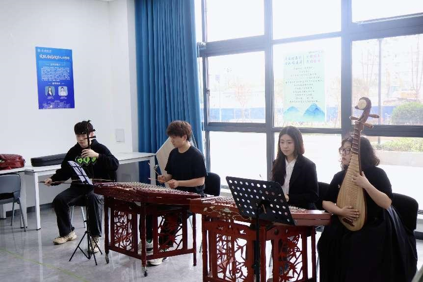 在“诗情雅乐·齐诵经典”环节中,音乐公司员工团队带来民乐合奏《金蛇狂舞》,唱诵《越人歌》《锦瑟》。伴着琴声袅袅,云享网络育人辅导员工作室的同学带来古典诗词朗诵,多种乐器的现场演奏,尽显民乐独特魅力,多首经典诗词现场齐诵,传承中华文化内涵,一弦一柱,一音一韵,皆包含着传统文化的浓厚韵味。